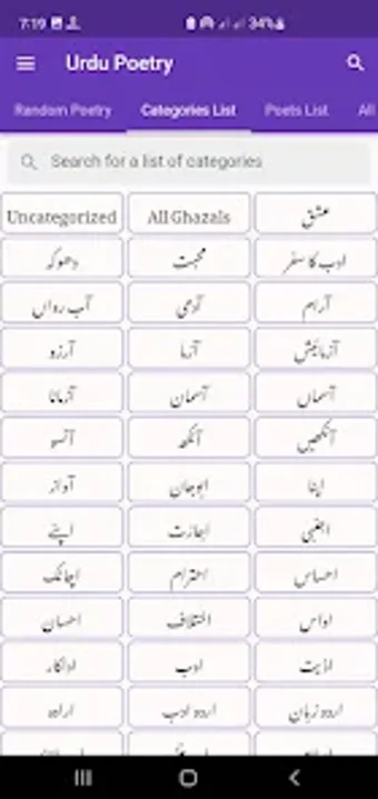 Urdu Offline Poetry är en utbildnings- och referensapp som erbjuder ett brett urval av urdu poesi och statusar för användning på sociala medier. Med över 600 olika kategorier av text, täcker appen ämnen som kärlek, vänskap, sorg och humor. Användare kan enkelt navigera genom olika kategorier såsom 'Good Morning', 'Sad', 'Funny', och 'Islami', vilket gör det enkelt att hitta passande citat för olika tillfällen.